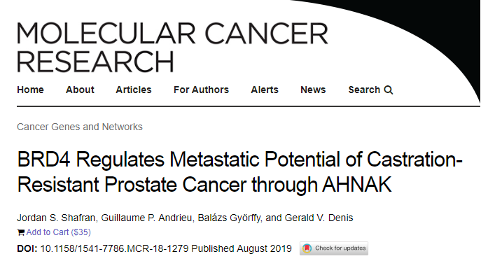 早在2019年,波士顿大学医学院(BUSM)的研究人员就提出,阻断特定蛋白可能是防止去势抵抗前列腺癌(CRPC)传播的一种有前途的策略。抑制蛋白BRD4而不是BRD2或BRD3,可以稳定地调节前列腺癌细胞的迁移和侵袭。 CRPC是一种复杂的异质性疾病,在单个肿瘤细胞中具有不同的AR状态和表达模式。随着疾病的发展,前列腺肿瘤细胞对AR信号的依赖性会降低,并使用其他信号机制来维持生长和扩散。因此,在依赖或独立于雄激素受体信号转导的细胞中,确定调节前列腺癌细胞迁移和侵袭的药物靶点是至关重要的。这一发现在2019年5月20日在线发表在《分子癌症研究》杂志上。